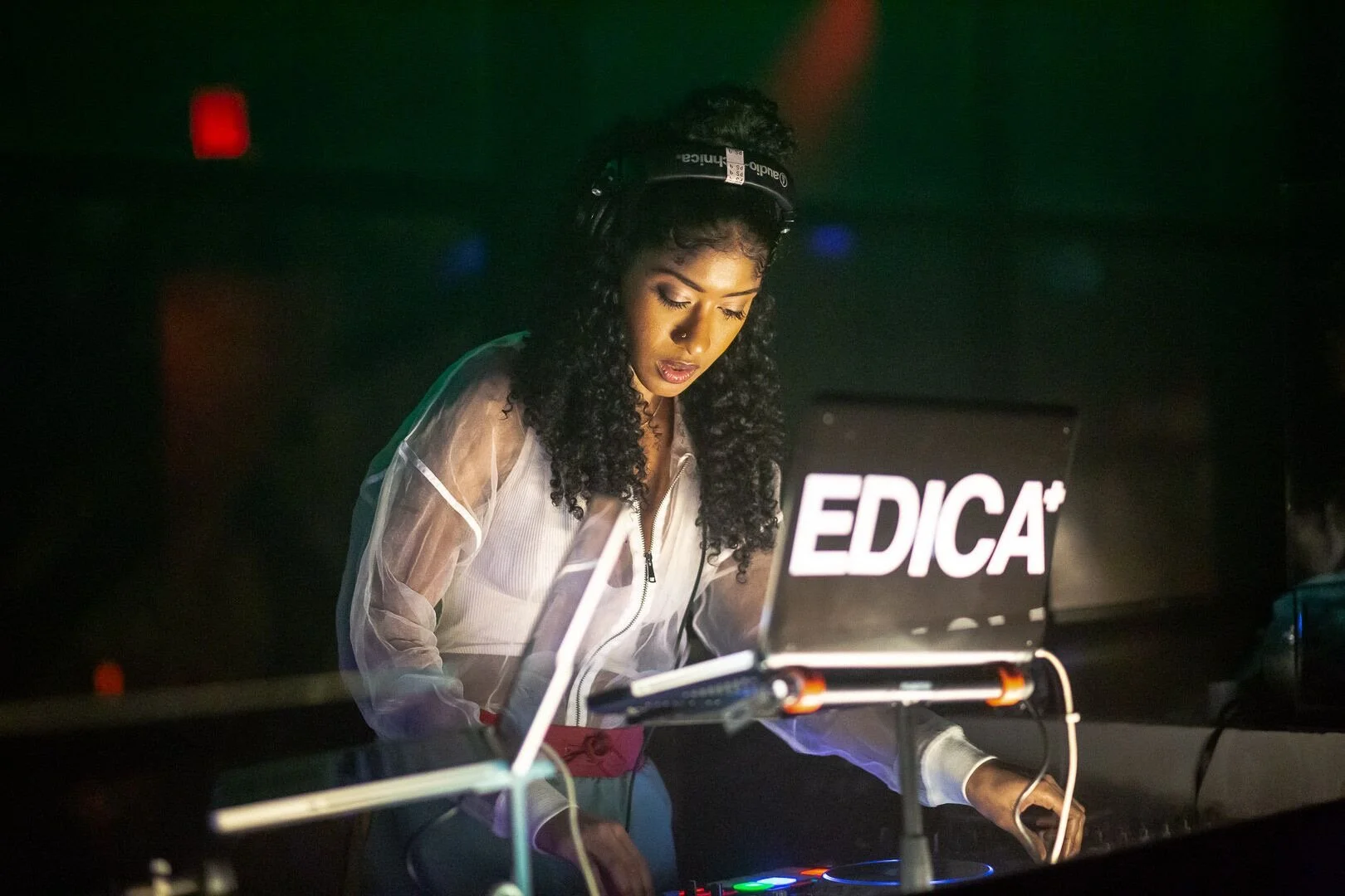 "EDICA+ creates otherworldly, intoxicating, and flavorful sounds from around the world," writes Essence Magazine. As a Guyanese artist, DJ, and curator hailing from South Texas by way of Brooklyn, she specializes in the fusion of classic and future sound system music, featuring Dub, Bass, Deep Dubstep, Dancehall, & other Experimental/World Electronica.